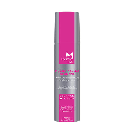 Get Instant Mocha-Kyssed, Confident Skin! Mystic Tan Mocha-Kyssed Bronzer Lotion gives a double punch of instant cosmetic colour, while gradually building a natural tan. The silky lotion, with warm, brown undertones, moisturizes skin and creates an all-over, customized look.